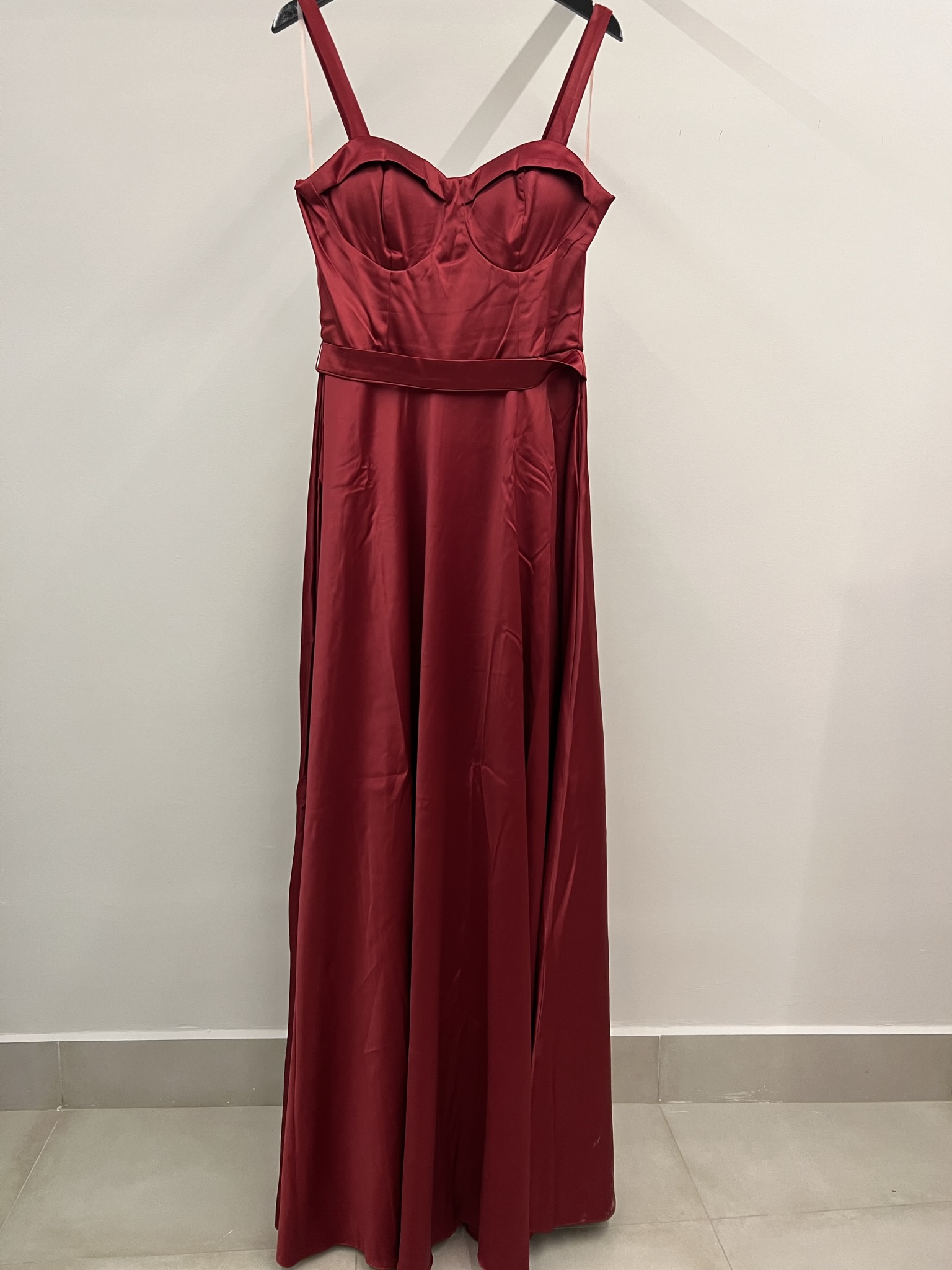 146 Vestido Em Cetim Com Bojo E Cinto