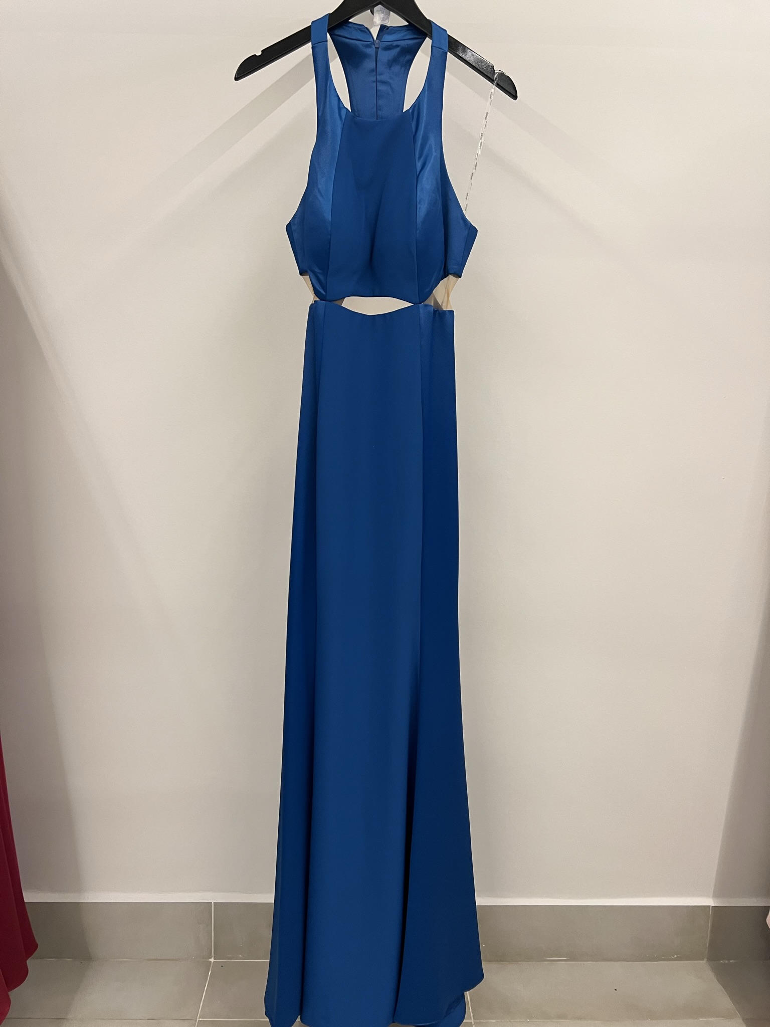 218 Vestido Liso Detalhe Tule Costa Aberta